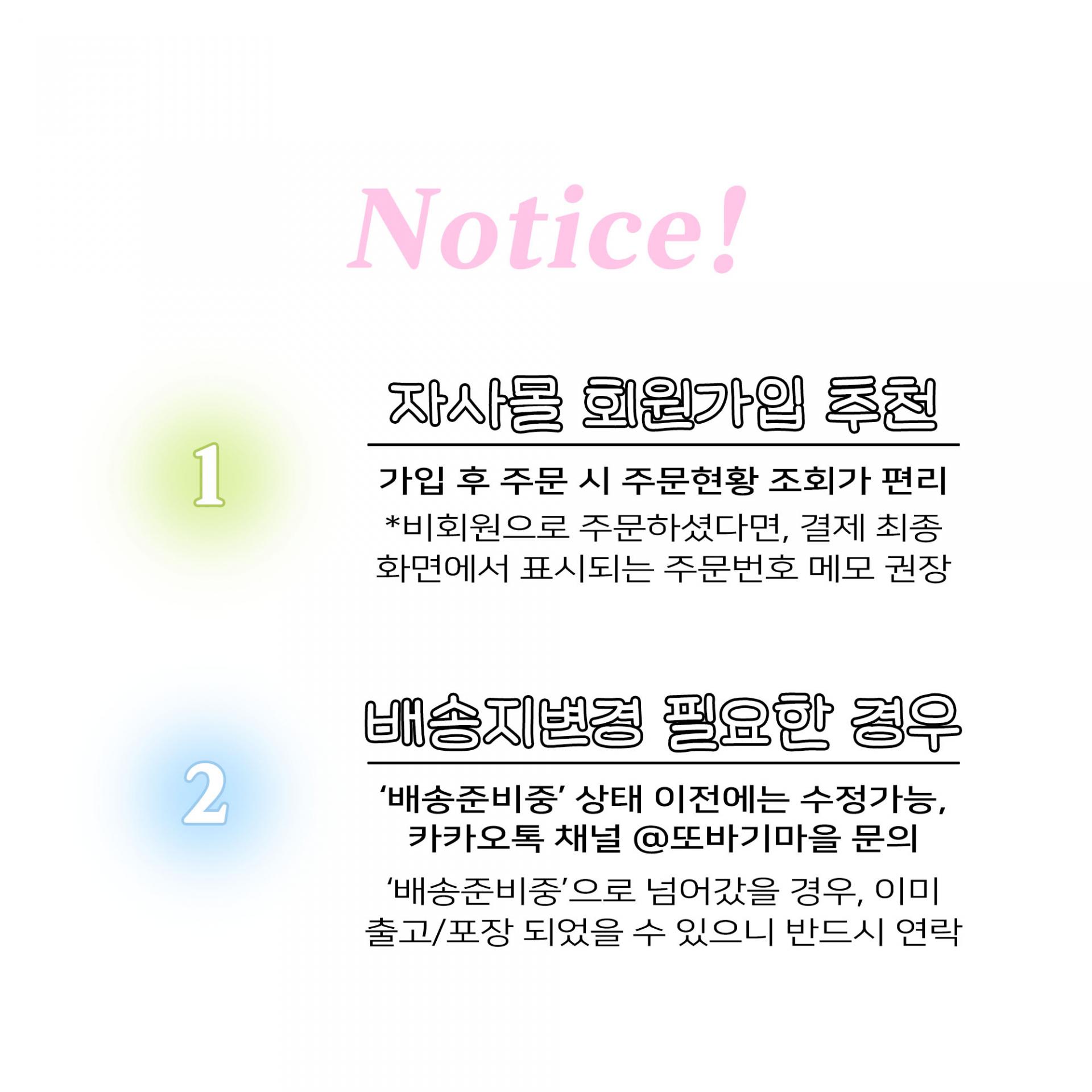 - 최종 장바구니 내 무게는 가볍지만, 안전을 위해 [택배]로 받아보고 싶으신분들은 Etc. 카테고리에서 [배송방법] 임의설정 상품을