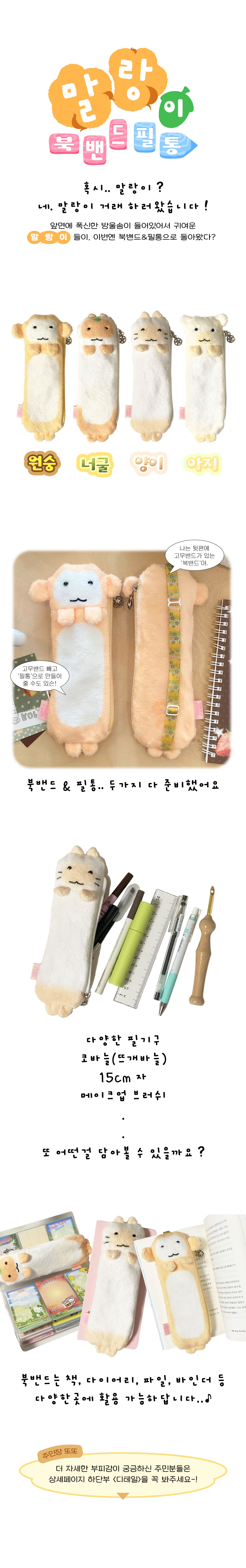 앞면에 푹신한 방울솜이 들어있어서 귀여운 말랑이들이, 이번엔 북밴드&필통으로 돌아왔다?